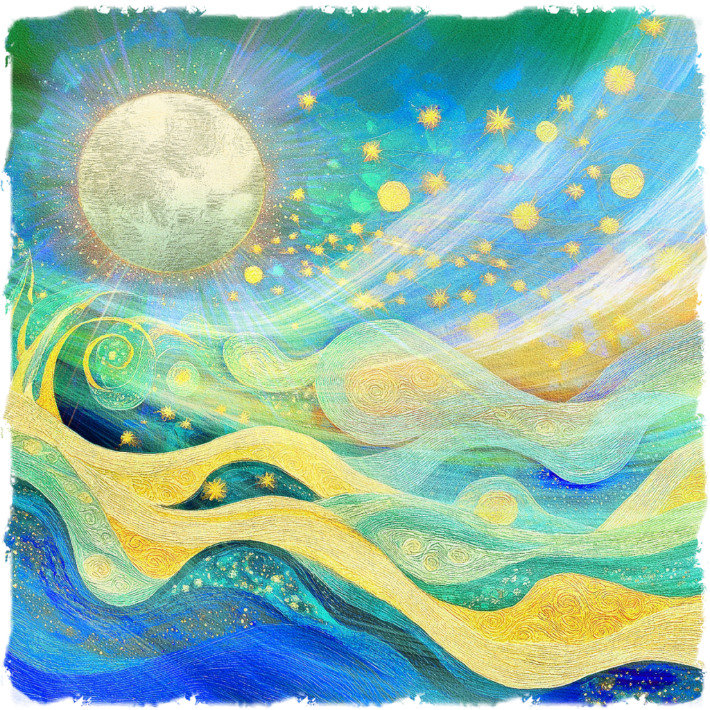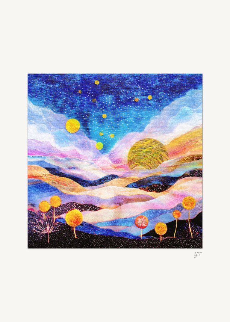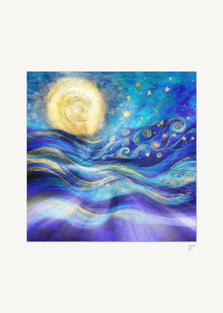 Vents Dorés Studio Golden Nocturne Vents Dorés Studio Cette collection s’attache à l’atmosphère nocturne, révélée par des lumières dorées, profondes et maîtrisées. Les œuvres jouent sur des contrastes doux entre ombre et lumière, où la couleur et la texture créent une impression de profondeur. Chaque composition invite le regard à circuler lentement, sans point fixe, dans une atmosphère nocturne apaisante. Golden Nocturne accompagne des espaces propices au calme, à la contemplation et au silence intérieur. La Collection Vents Dorés Studio Lueur sur la mer intérieure Voir Spirale de nuit dorée Voir Constellation du silence Voir Paysage sous les astres lents Voir Jardin nocturne aux lumières suspendues Voir Après l’orage, l’or du ciel Voir Précédente La Boutique Suivante