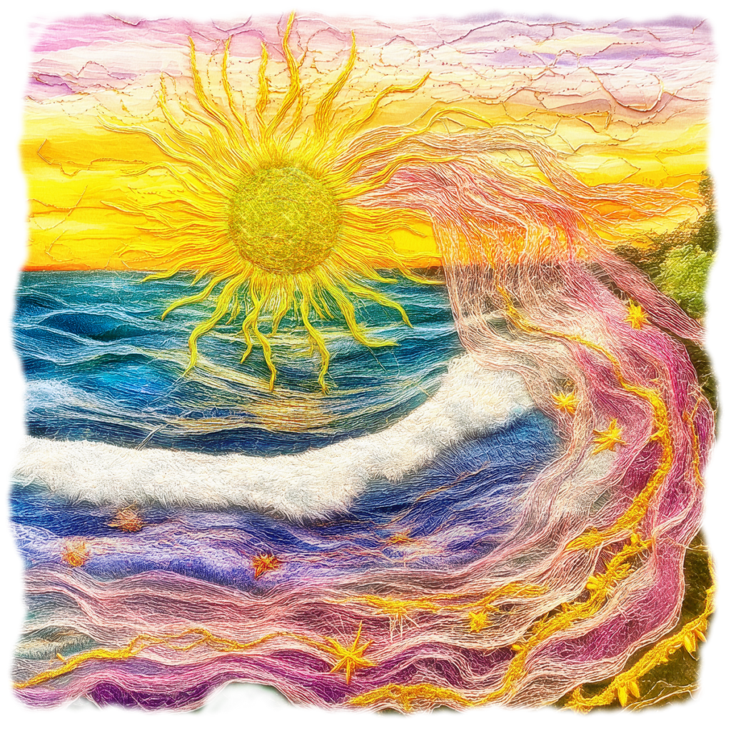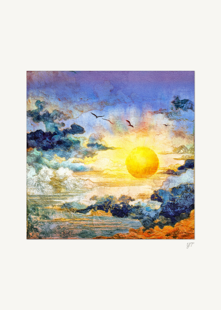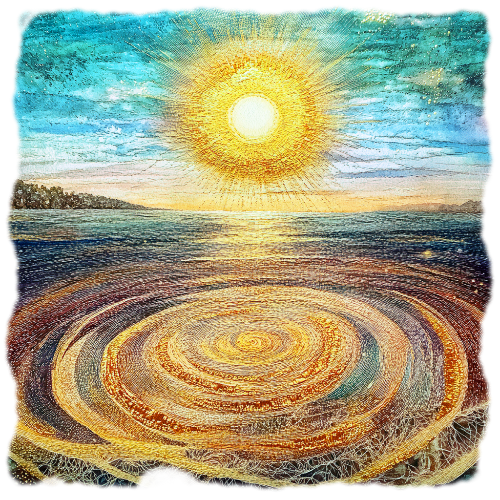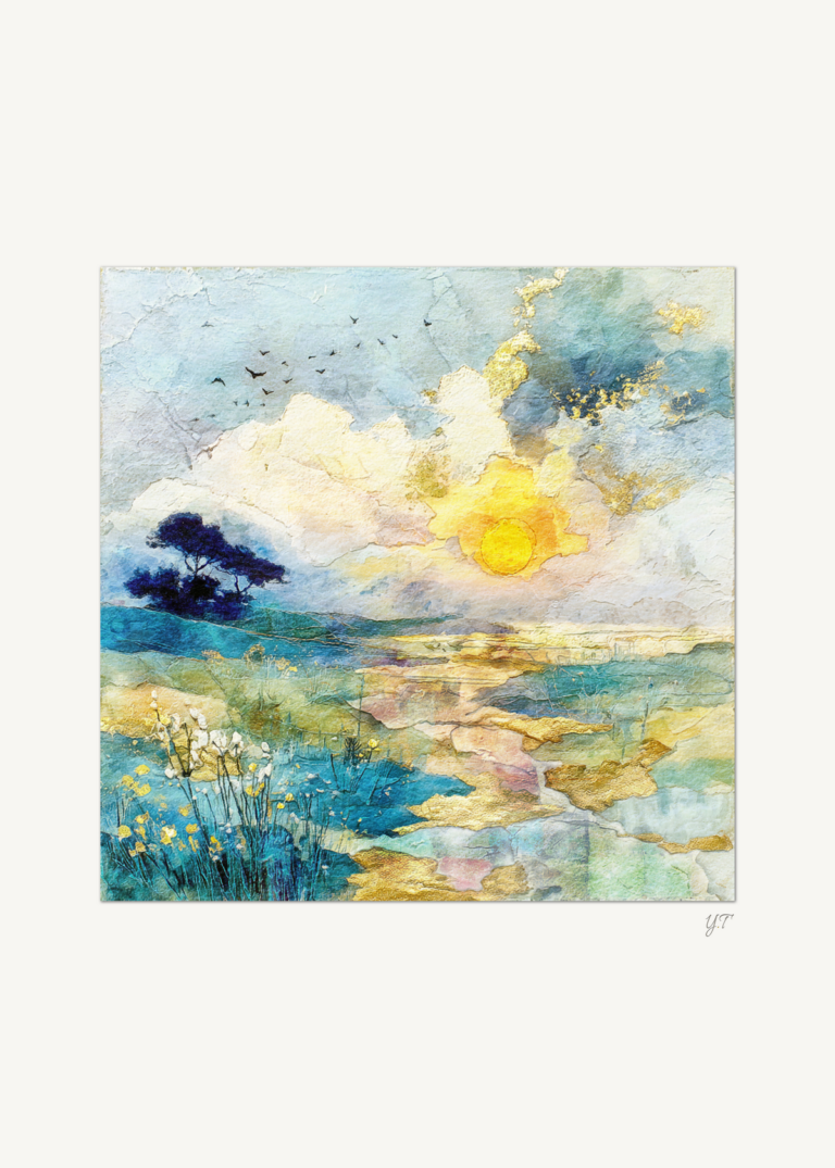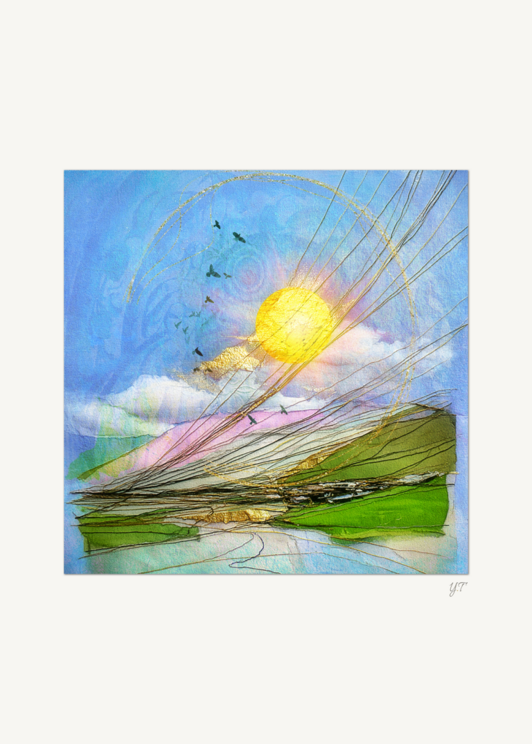 Le soleil y apparaît comme un point d’équilibre, souvent central, qui diffuse une chaleur douce dans le paysage.